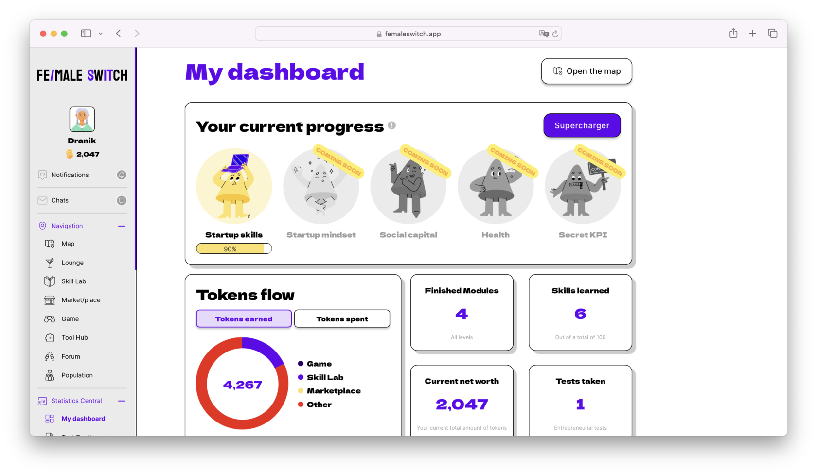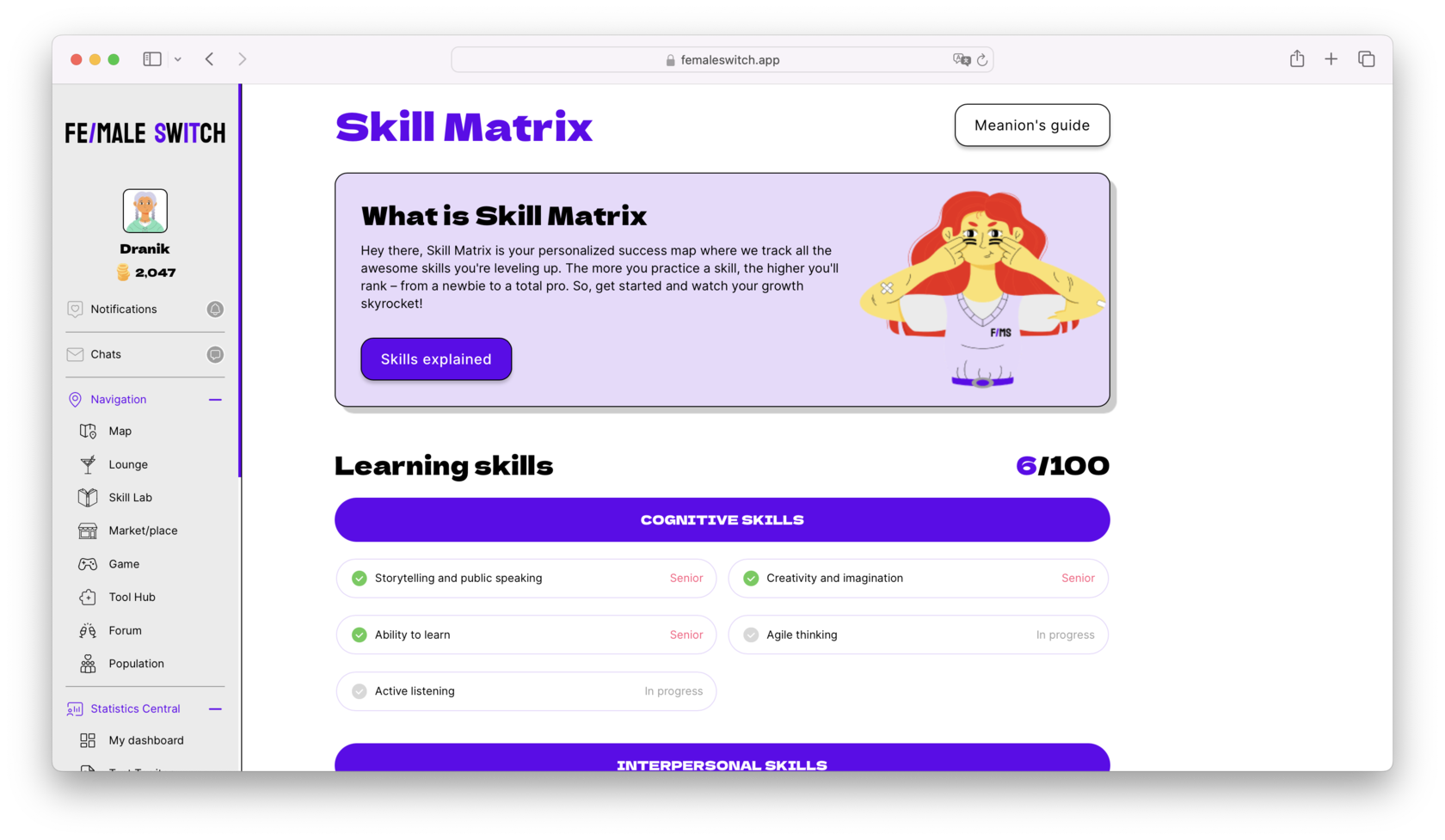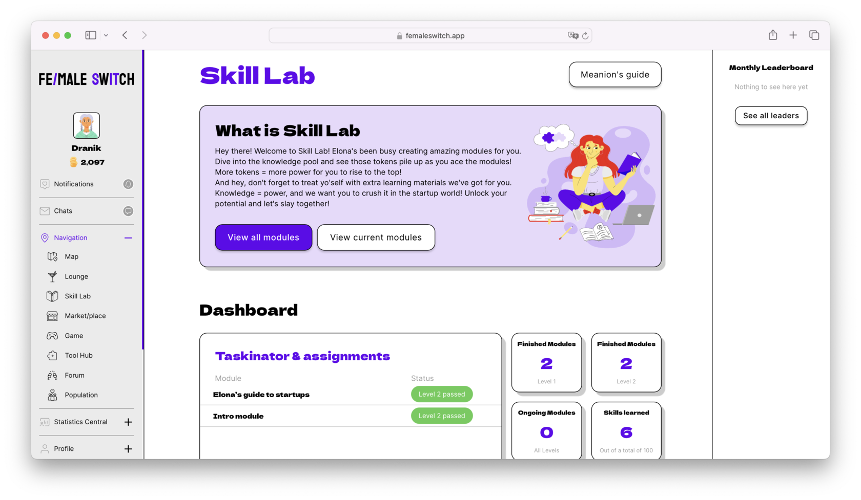 Learn via micro-modules and check your progress to be even more proud of yourself. When a quest in the game seems too complicated, Skill Lab is the place where you gain the missing knowledge on how to start a business.